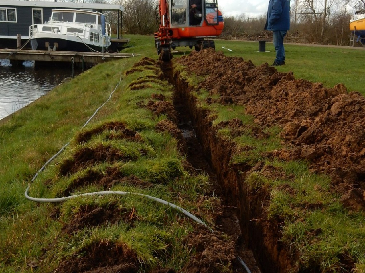 Aanleg elektriciteit bij camperplekken en steiger N