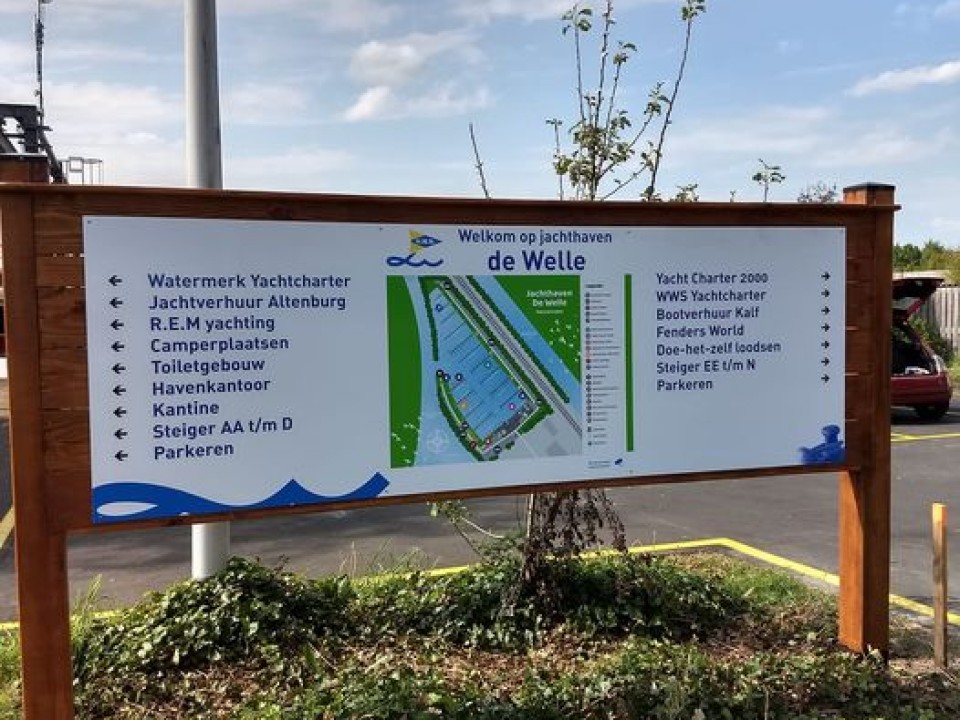 Met het bewegwijzeringsbord, en straks ook het nieuwe welkomsbord én het ontmoetingsbankje is de entree wat gezelliger gemaakt.